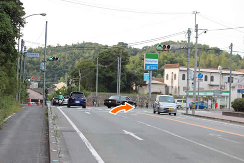 飯塚警察署信号を右折します。ファミリーマートさんが目印です。(写真は田川方面から)