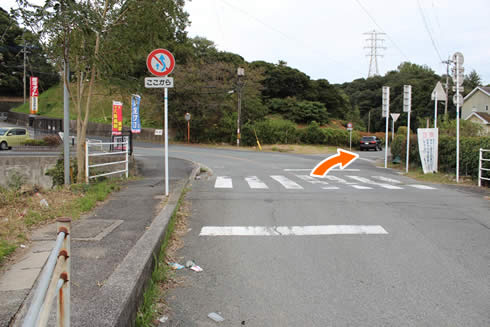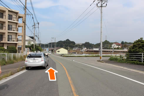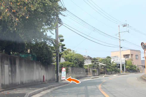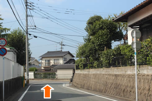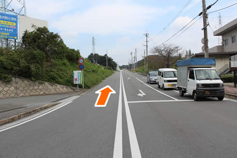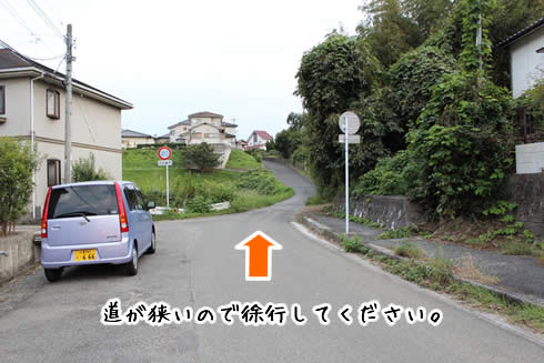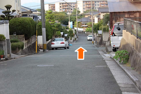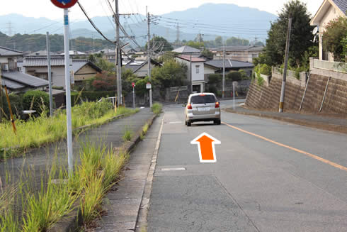 道なりに直進、坂が見えてきますのでさらに直進されてください。 ※道が細くなっていますので、徐行でお願いいたします。