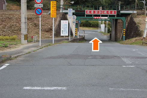 浦田ガード下を通過しましたら、三叉路をすぐ右折します。